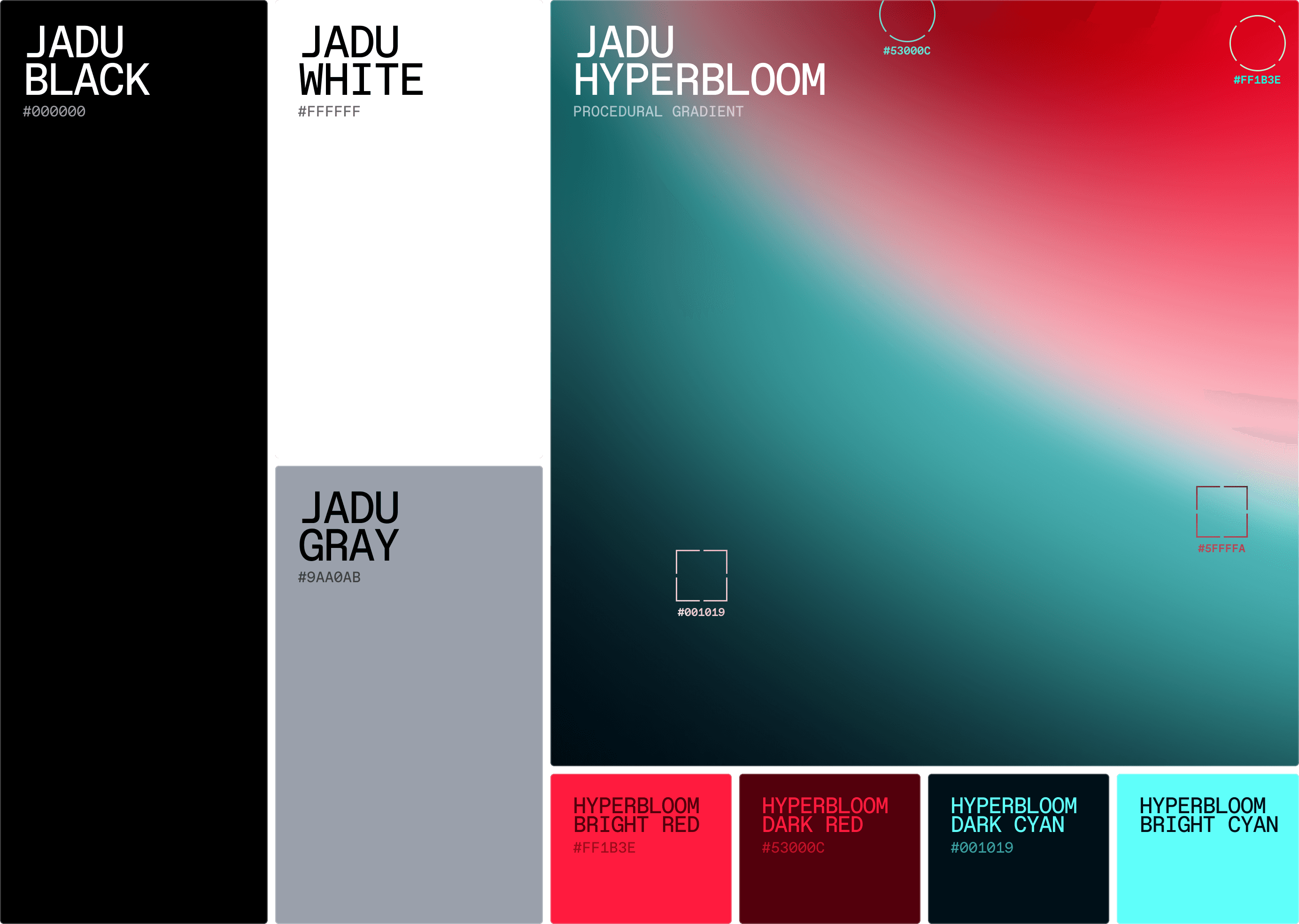 A key component of the new brand system is the Hyperbloom gradient. A procedural red-to-blue-to-black spectrum that acts as our atmospheric visual core.