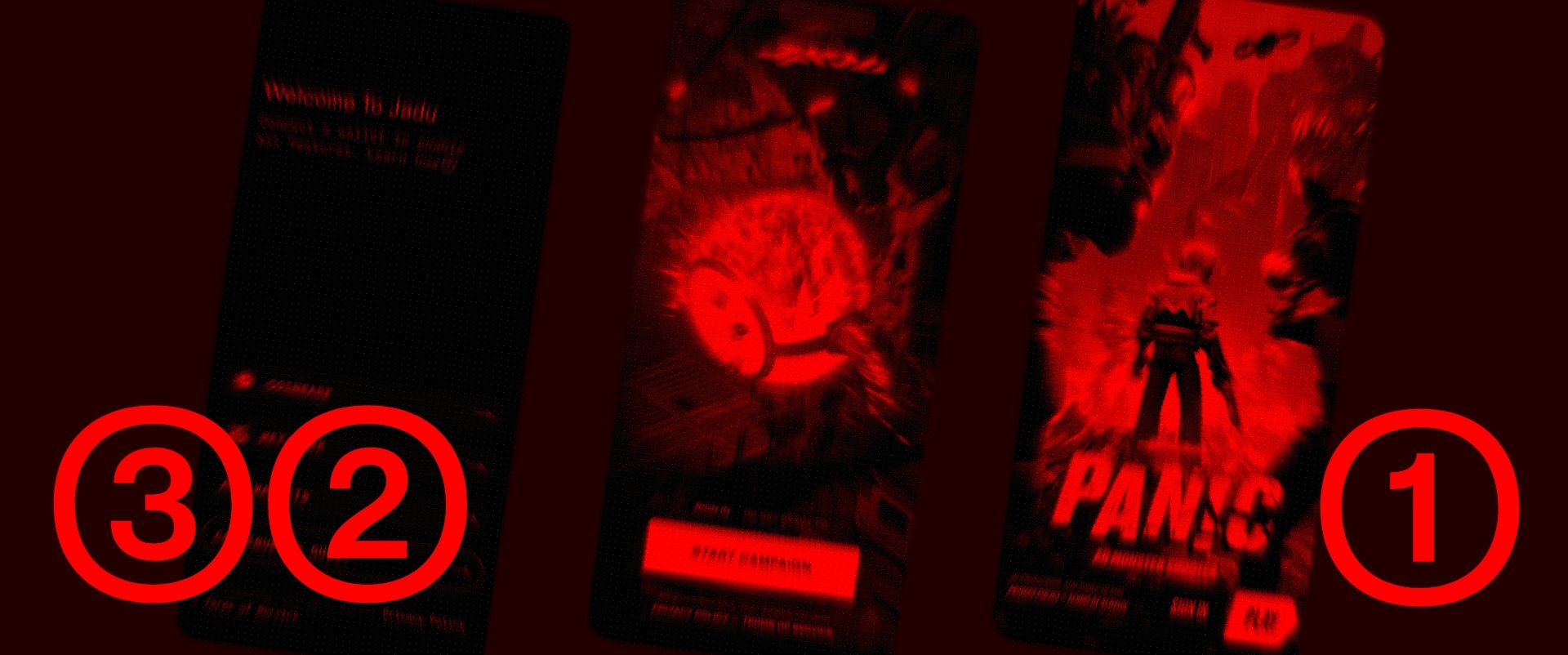 Below you can see more details about the products — ① Panic, ② Fight, ③ NFT Platform — I helped Jadu create. ↯